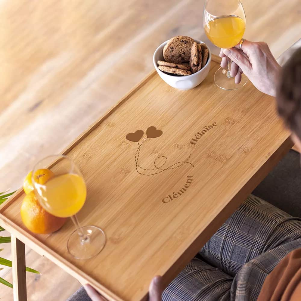 Parce qu’il est facile d’utilisation grâce à ses pieds rabattables. De plus, le plateau en bambou est facile à nettoyer. C’est un produit polyvalent et durable. Il a été créé en bambou massif, respectueux de l’environnement et de qualité supérieure. En plus, son style est également un élément de décoration naturel épuré, élégant et personnalisable.
