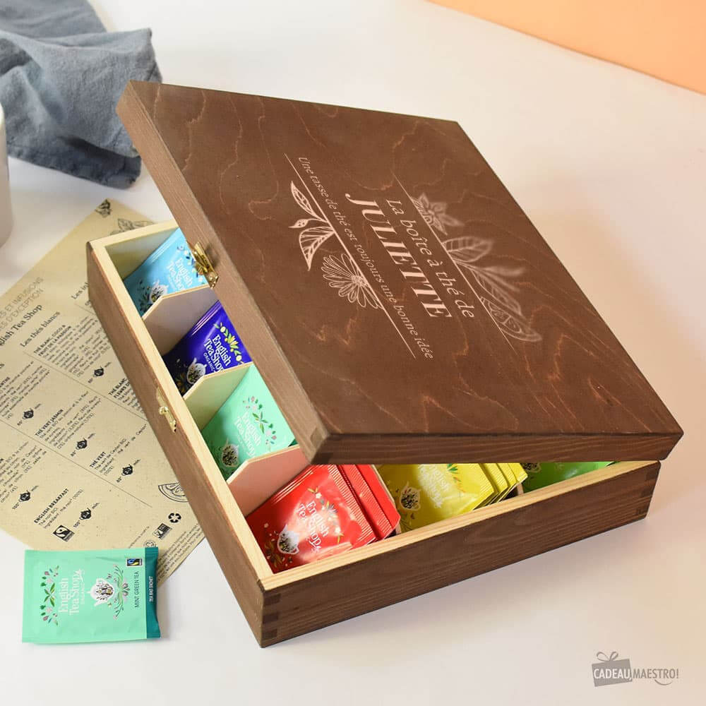 Le bien-être est au cœur des préoccupations en 2026. Le coffret en bois avec thés et infusions bio, gravé à son prénom, coche toutes les cases du cadeau idéal. On adore le côté éco-responsable du bois et la qualité du bio, mais c’est surtout la personnalisation qui fait la différence. Chaque tasse de thé devient un moment privilégié qu’elle s’accorde, en sachant que cette boîte a été pensée spécialement pour elle. C’est l’alliance parfaite entre utilité, santé et affection.