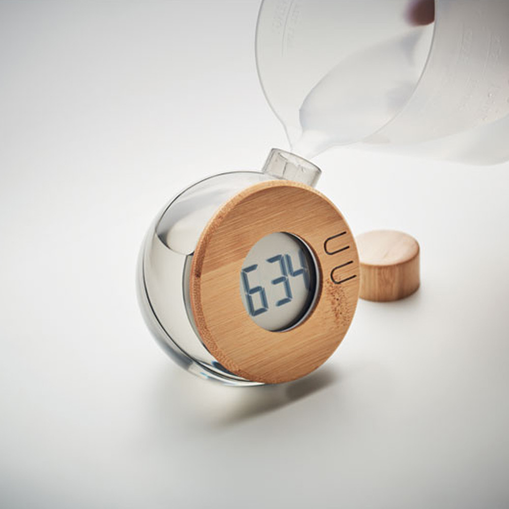 L’horloge à eau CadoMaestro est une idée cadeau originale et écologique qui fonctionne uniquement avec de l’eau, sans pile ni chargeur. Il suffit de remplir le réservoir pour que l’écran LCD s’allume et affiche l’heure. Son design compact avec touches de bambou et sa couleur gris-clair en font un objet déco pratique pour un bureau, une chambre ou une pièce à vivre. C’est une manière simple et fun d’offrir un cadeau utile, à la fois esthétique et peu énergivore, parfait pour ceux qui aiment les objets à la fois high-tech et respectueux de l’environnement.